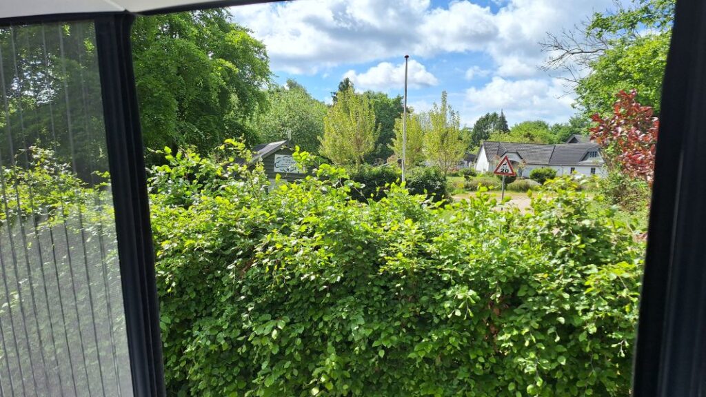 Aber alles ging gut, und die Stellplätze erwiesen sich überraschend komfortabel: Jeder einzelne von einer hohen Ecke an drei Seiten umgeben, mit eigenem Stromanschluss, und genug Platz für Womo und nebendran Tisch und Stühle. Bezahlt wird in bar – man braucht also doch hin und wieder mal Bargeld im digitalisierten Dänemark…