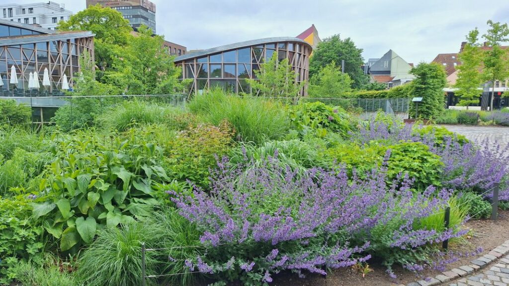 Nach etwa 10 Minuten Fußweg war dann auch schnell das Ziel des Tages erreicht: Das Hans-Christian-Andersen-Haus. Ein architektonisches Highlight mitten in der Altstadt, mit viel Grün, runden Formen und vielen Ebenen.