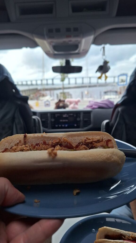 Interessiert konnten wir auch noch das Auslaufen des örtlichen Seenotrettungsbootes verfolgen, das wohl zu einem Übungstörn startete. Und interessant auch unsere „Nachbarn“ – vom Mietcamper aus Deutschland über ein großes „Wohnschiff“ aus Schweden bis hin zu einem Pick-Up mit Camping-Aufsatz war alles vertreten. Mit letzterem kam kurz nach uns eine vierköpfige Familie angereist, zwei Erwachsene mit einem Kindergarten-Kind und einem Baby. Wir sind leider nicht in Kontakt gekommen, und so fragen wir uns bis heute, wie die es schaffen, auf so engstem Raum zusammen zu übernachten… Also, falls Ihr das lest und Euch hier wiedererkennt, schreibt uns gerne einen Kommentar unter dem Artikel!