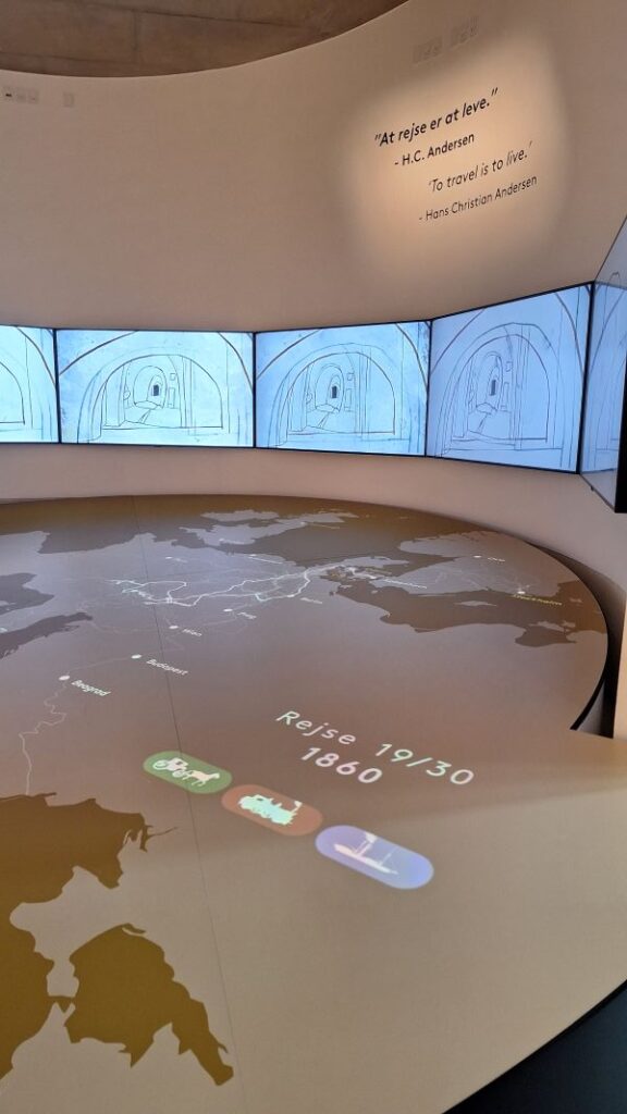 Man erfährt zuerst viel über das spannende Leben. Besonders beeindruckend sind die ungefähr 30 Reisen, die H.-C. Andersen unternommen hat, und wie und warum sie sein künstlerisches Schaffen beeinflusst haben. „Reisen bedeutet Leben“, soll er gesagt haben. Ein schönes Motto, wie wir finden.