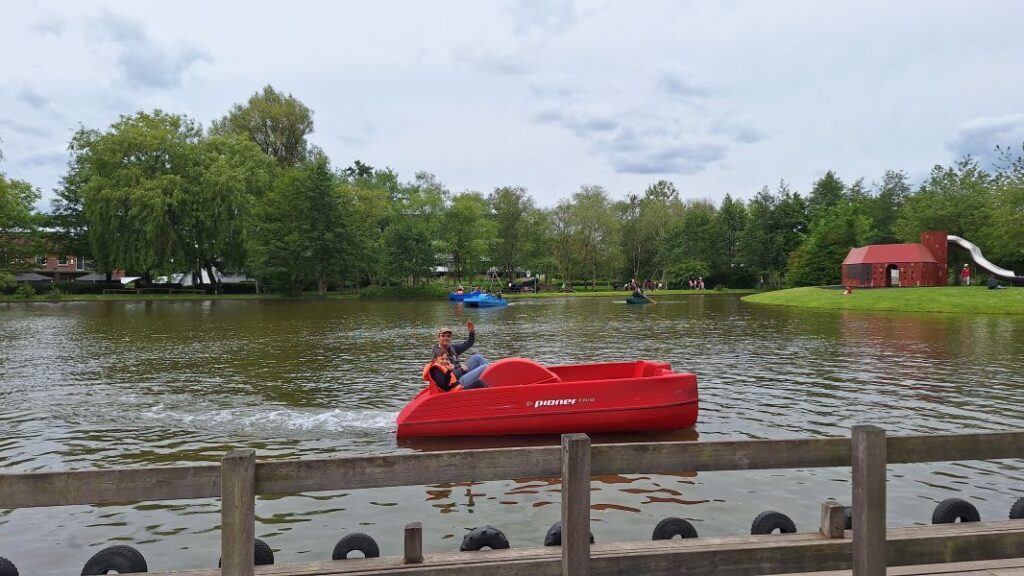 Und das Highlight: Man kann sich Paddelboote oder Treetboote ausleihen und einige Runden über einen kleinen See fahren. Dazu werden Rettungswesten ausgegeben und freiwillige Mitarbeitende betreuen die Anlage. Es gibt keinen Eintritt für die Anlage, und auch das Bootfahren ist kostenlos! Und macht riiiesigen Spaß!